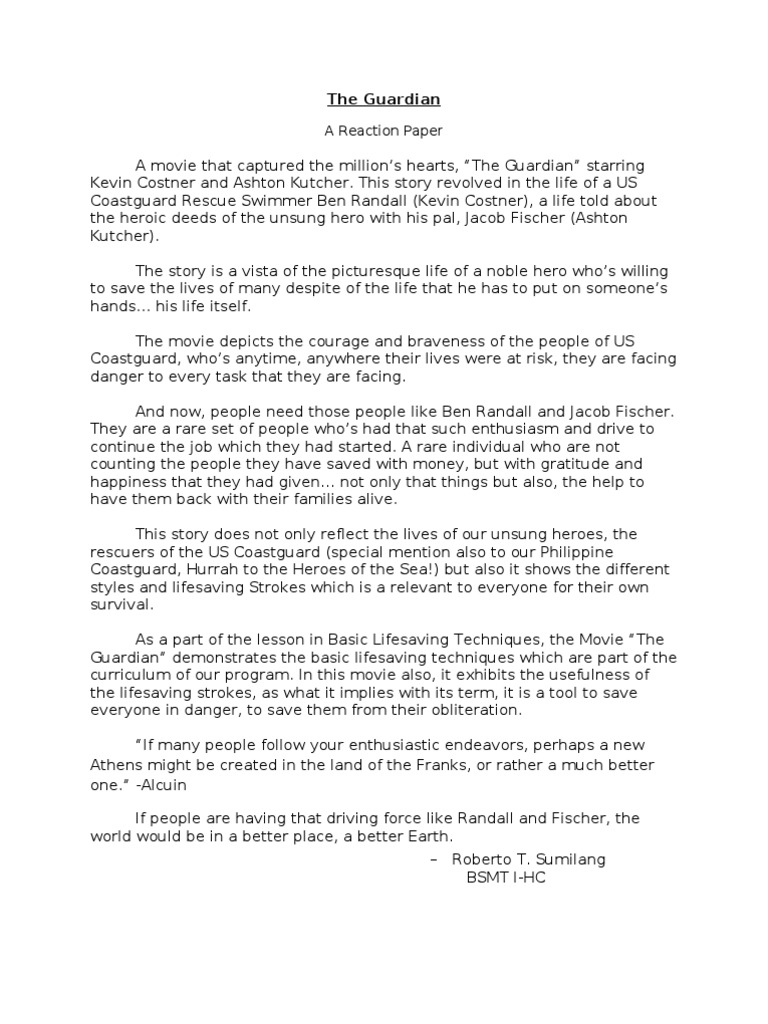 - Reaction To The Movie The Guardian , Coast Guard, Where He Is Taken Under The Wing Of A Famed Rescue Swimmer Still Struggling With.