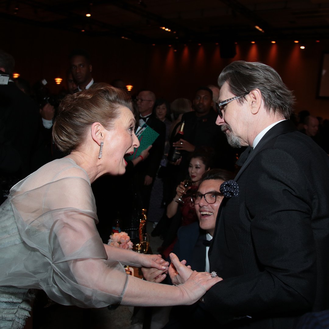 - Gary Oldman Web On Twitter Gary Oldman With Family And Friends At The Oscars Douglas Urbanski Diane Wilk Alfie Oldman Gisele Schmidt Lesley Manville Photo By Greg Williams Thanks To Gisele Via . Lesley Manville Has Already Been Lucky To Win An Award For Her Work On Phantom Thread.