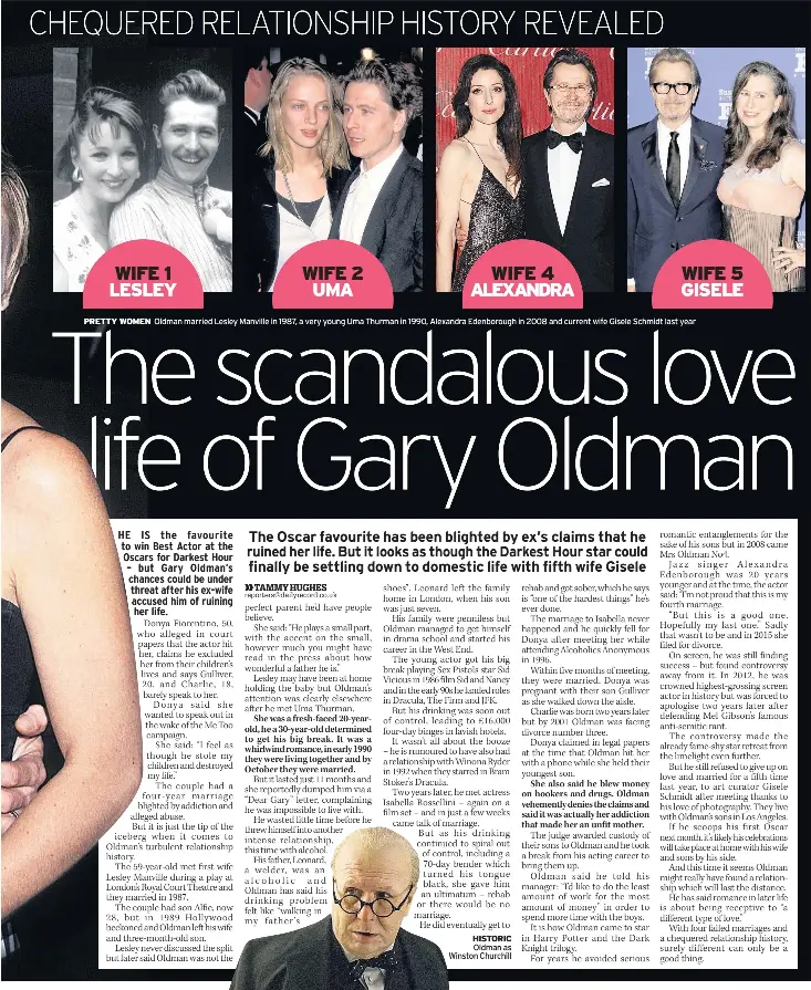 - Pressreader Daily Record 2018 02 05 The Scandalous Love Life Of Gary Oldman - In A New York Times Article, She Says Weinstein Pushed Her Down And Tried To Expose Himself At The Producer's Hotel Room In London During The 1990S, Before She Managed To Wriggle Away.